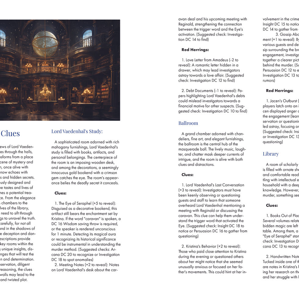 A Word to Investigators: "Masquerade of Shadows" is optimized for characters of levels 1-10, featuring a sliding scale XP and reward system tailored to accommodate a broad range of player levels. Step into a tale where every choice can unravel a secret, and the dance of intrigue plays out in the echoing hallways of power and prestige. The narrative is designed to provide a balance of mystery-solving and role-playing, ensuring a unique and thrilling D&D experience.