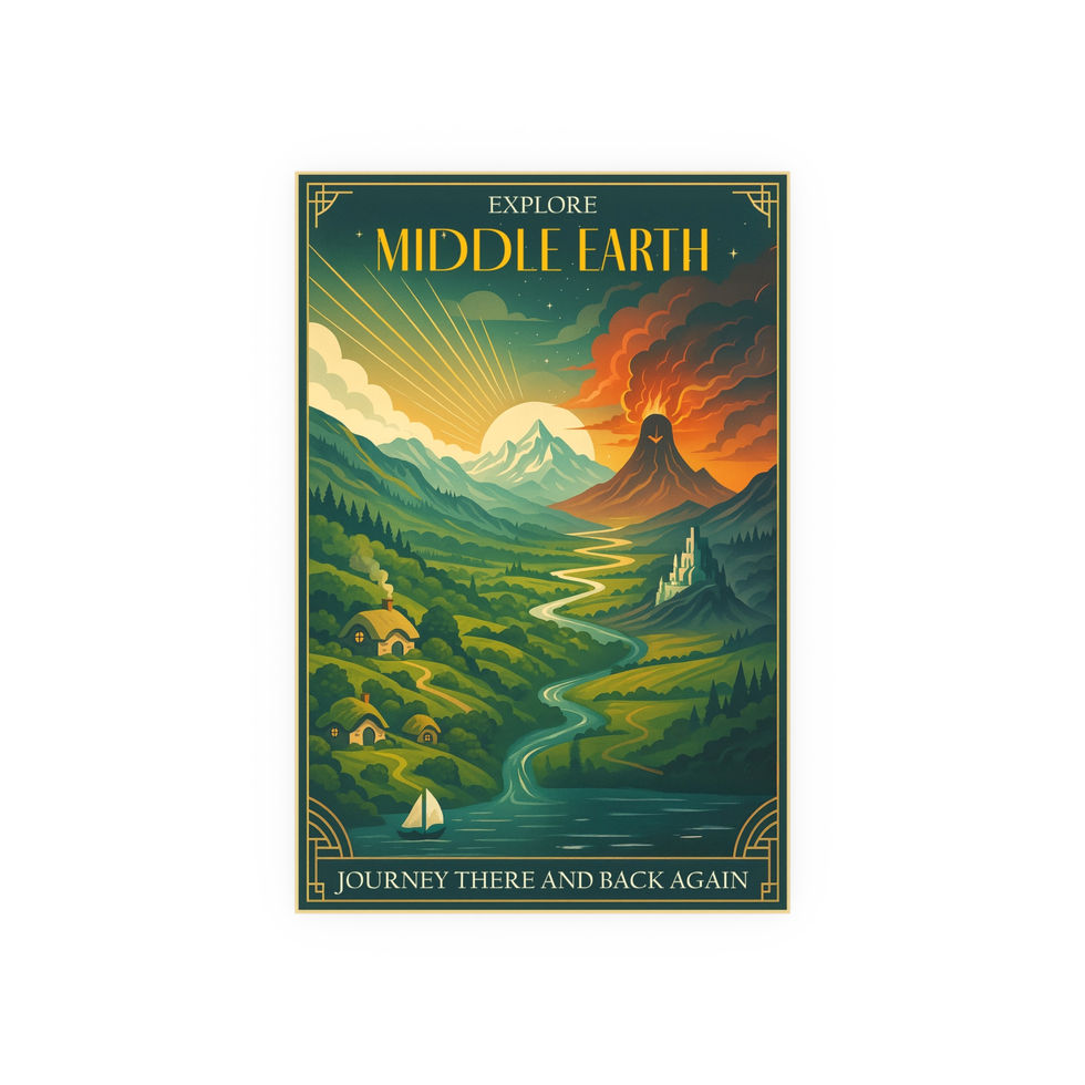 Middle-earth Vintage Art Deco Travel Poster — Journey There and Back Again