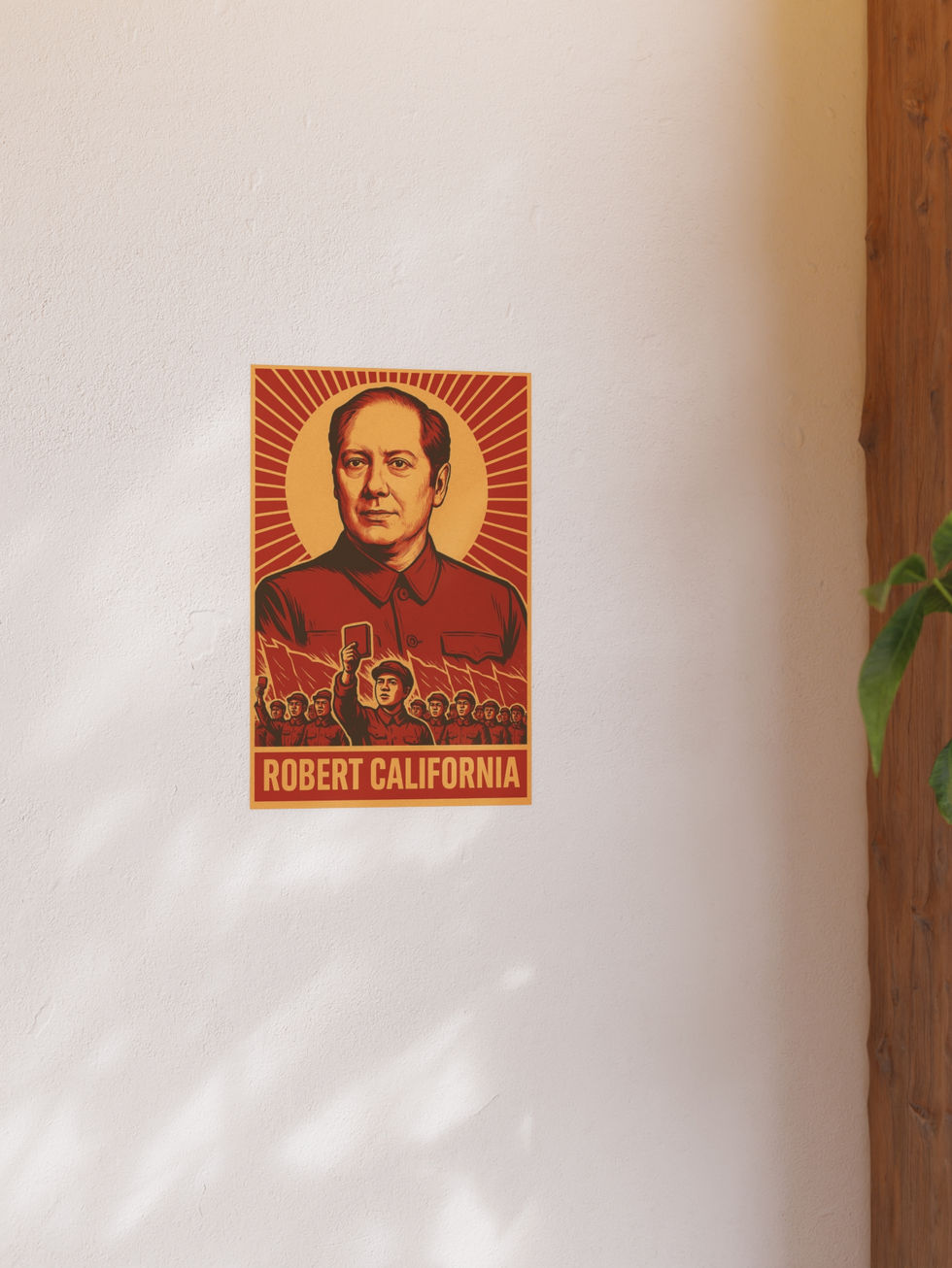 The Lizard King rises. This faux-propaganda print casts The Office’s most enigmatic CEO as the unquestioned commander of reality itself. With sun rays blazing and red books lifted high, this design captures the weird, magnetic menace of James Spader’s finest fever dream performance.