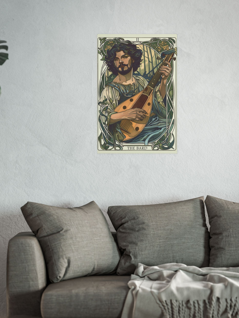 Channel the enchanting power of the Bard with this stunning Art Nouveau tarot-style poster. Perfect for Dungeons & Dragons fans, musicians, and fantasy art collectors, this piece brings song, story, and magic to life. Ideal for game rooms, studies, or gift-giving.