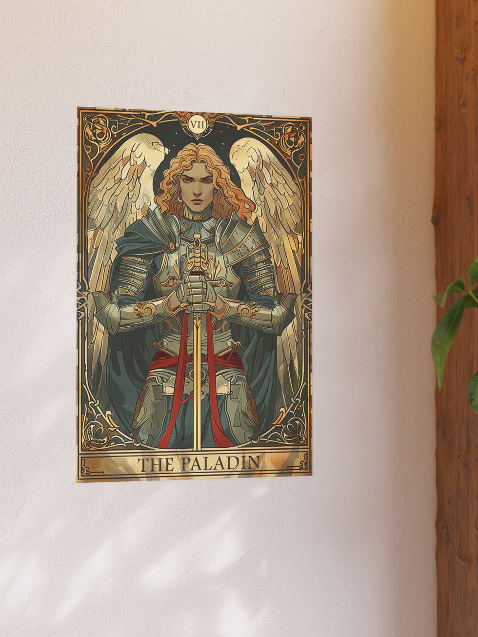The Paladin | Angelic Justice D&D Tarot Poster – Art Nouveau Fantasy Knight