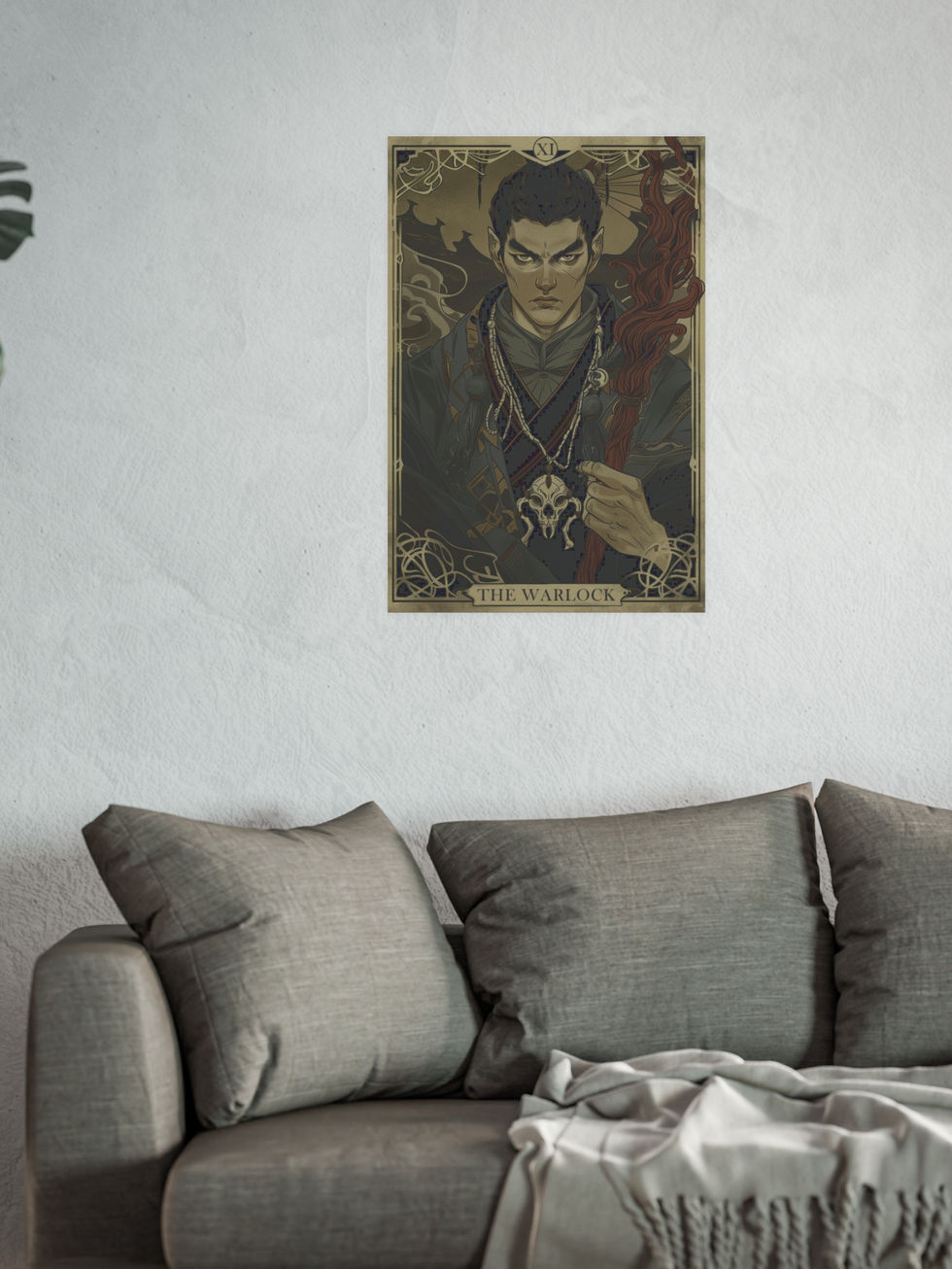 The Warlock – Occult Fantasy Tarot Card Print | Dark Magic RPG Wall Art