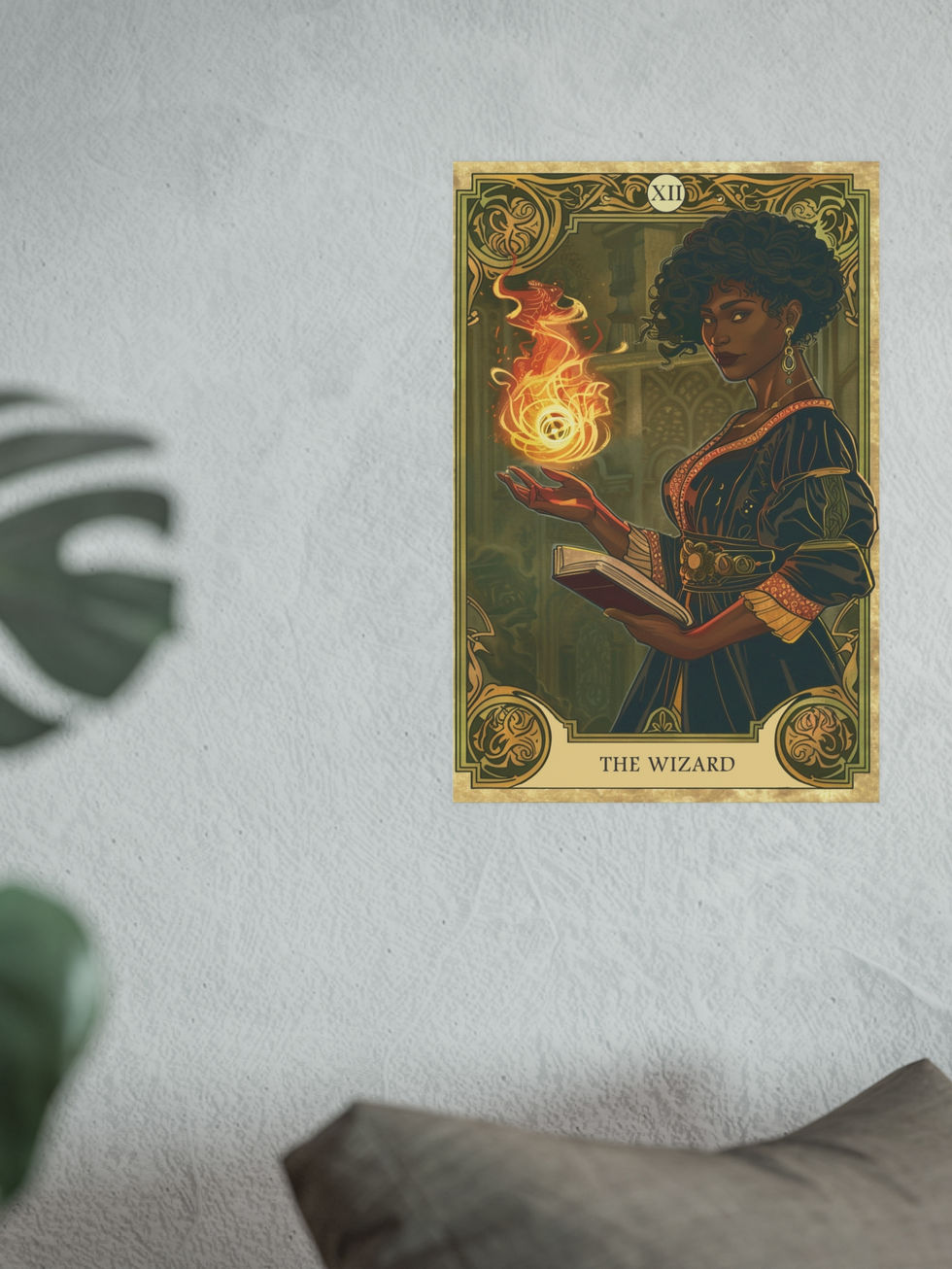 Smart, composed, and utterly magical, The Wizard evokes arcane mastery with a blend of intellect and elegance. Holding an open tome and conjuring flame with a flick of her fingers, this Art Nouveau-inspired artwork embodies the ultimate spellcaster. Ideal for fans of fantasy mages, powerful women in RPGs, and classic wizard archetypes.